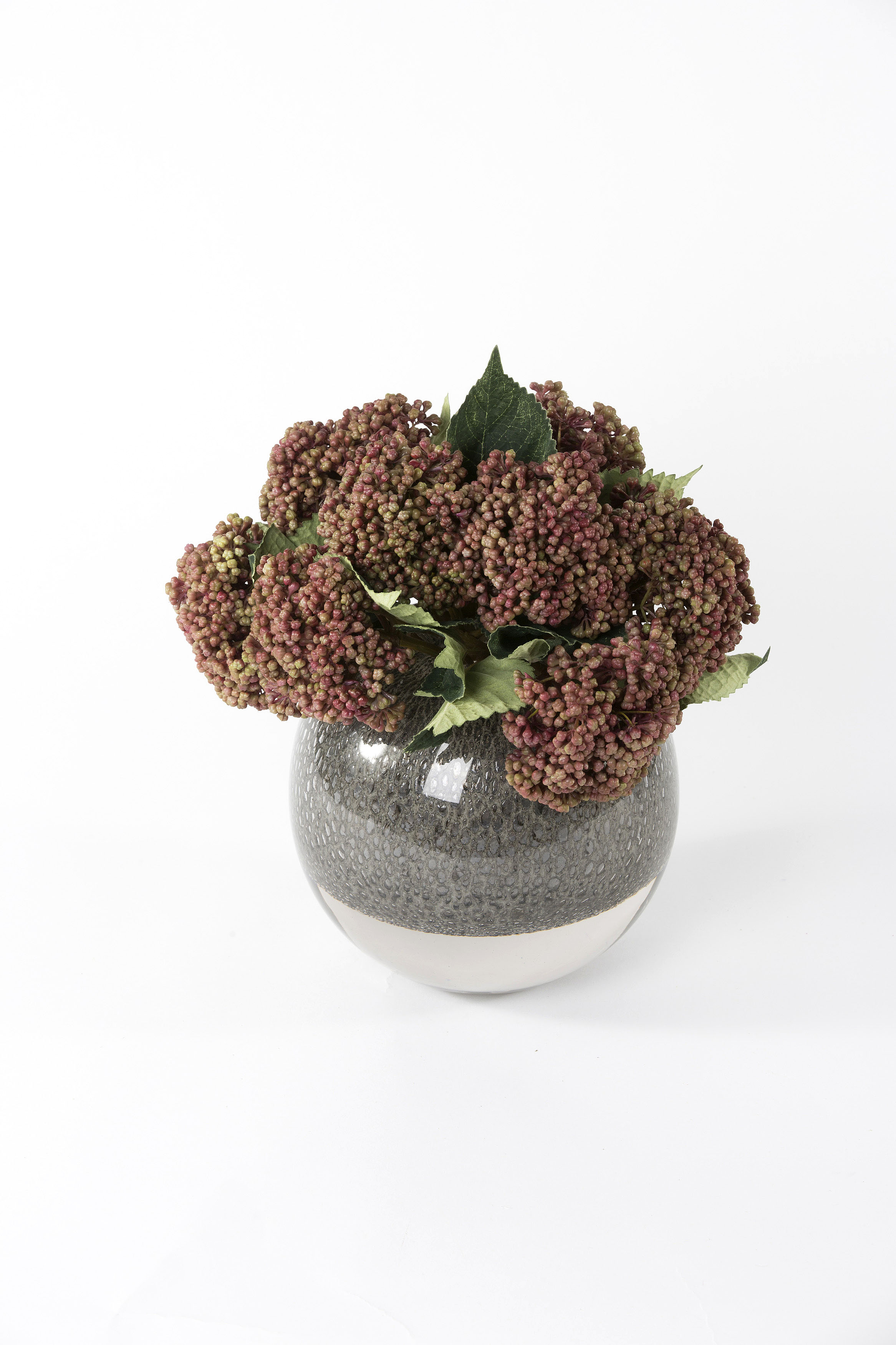 Hydrangea Berries In Grey Globe Vase